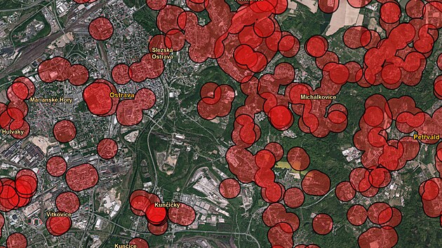Piroteknik imha işaretlerinin bulunduğu Ostrava haritası