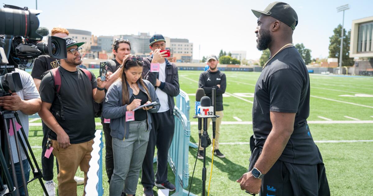 Taraftarlar, Bruins'in antrenman sahasına bakan otoparkın bir tarafını tıka basa doldurdu. Ebeveynler ve bağışçılar Wasserman Futbol Merkezi'nin terasını doldurdu. Yüzlerce lise öğrencisi ve eski oyuncu sahada dolaşırken, bazıları nabız gibi atan müzik eşliğinde zıplıyordu.