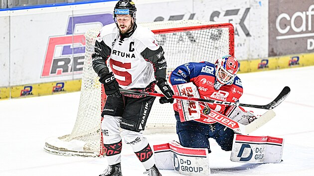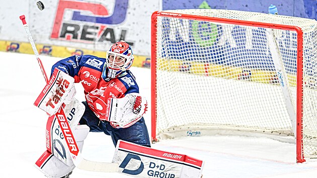 Pardubice'li kaleci Roman Will'in önünde Sparansk tonk Filip Chlapk ekranı.