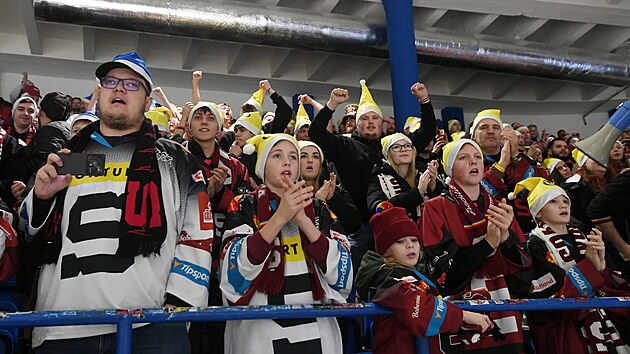 Kladno, 22/12/2024, Ryti Kladno – Sparta Prag, hokey ekstra ligi. Fotoğraf: Ondej Biit, MAFRA Sparta taraftarları vnonce destanlarında kutlama yapıyor
