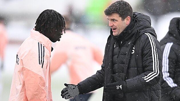 Sparansk kdelnk Garang Kuol, yardımcı antrenör Diarmuid O'Carroll ile tartışıyor
