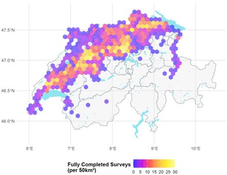 2023'ün sonlarında, İsviçre ekilebilir çiftlikler arasında büyük ölçekli bir anket başlattık ve 2.728 yanıt aldığımız 15.023 çiftçiye ulaştık. Bu geniş kapsam ile bulgularımız artık bireysel vaka çalışmaları ile sınırlı değil, İsviçre ekilebilir çiftçilikte toprak yönetimi uygulamalarının temsili bir resmini sunmaktadır.