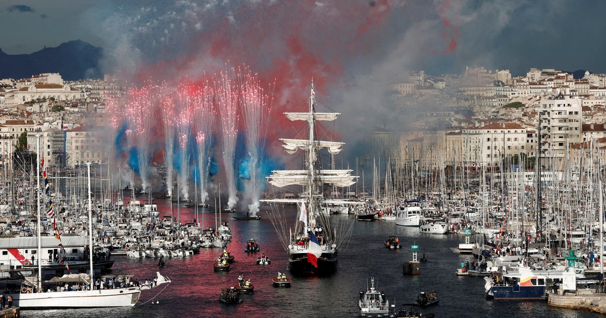 Paris — Olimpiyat meşalesini taşıyan 19. yüzyıldan kalma bir yelkenli gemi ufukta belirdiğinde, Çarşamba sabahı erken saatlerde Marsilya'nın Eski Limanı çevresinde kalabalıklar toplanmaya başladı. Üç direkli bir gulet olan Belem'e, berrak mavi bir gökyüzü altında sakin denizlerde yavaş bir deniz geçit töreniyle Fransa'nın ikinci büyük şehrinin limanına yaklaşırken 1000'den fazla tekne eşlik etti.