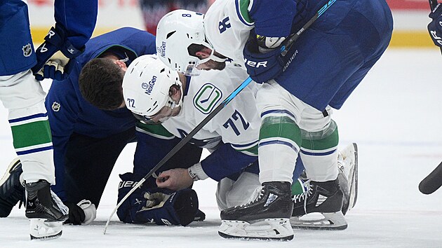 Vancouver'dan Otesen Filip Chytil buzdan havalanıyor.