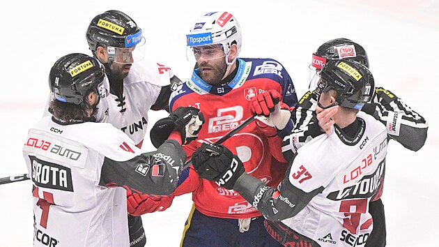 Pardubice'nin forvet oyuncusu Kaut, Spartalılar tarafından kuşatma altında.