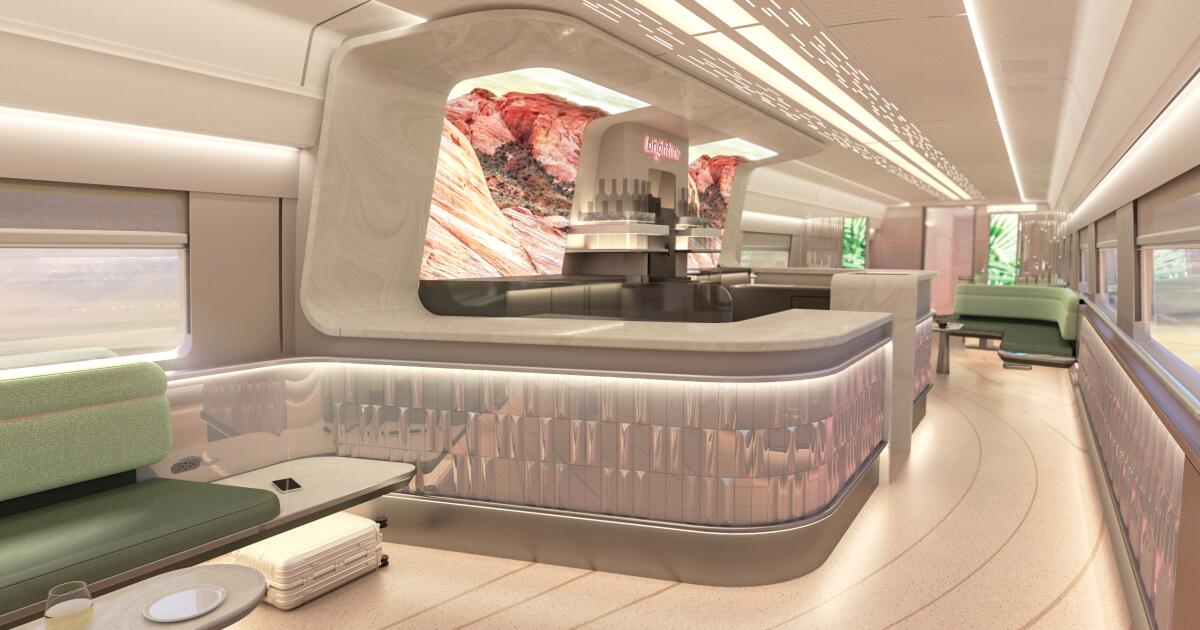 Güney Kaliforniya ile Las Vegas arasında hızlı tren inşa etmeye başlayan ve inşaatın 2028 Olimpiyatları için zamanında tamamlanmasını hedefleyen demiryolu şirketi Brightline West, bir inşaat sözleşmesi imzaladı ve güzergah için rahat vagon tasarımlarının bir sunumunu yayınladı.