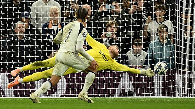 Tottenhamlı Xavi Simons, Slavia'ya verilen penaltıyı çeviriyor.