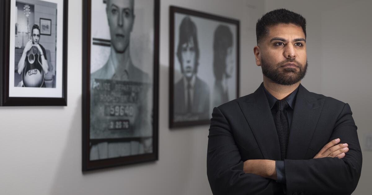 Damon Alimouri, 33, in his law office in Pasadena.
